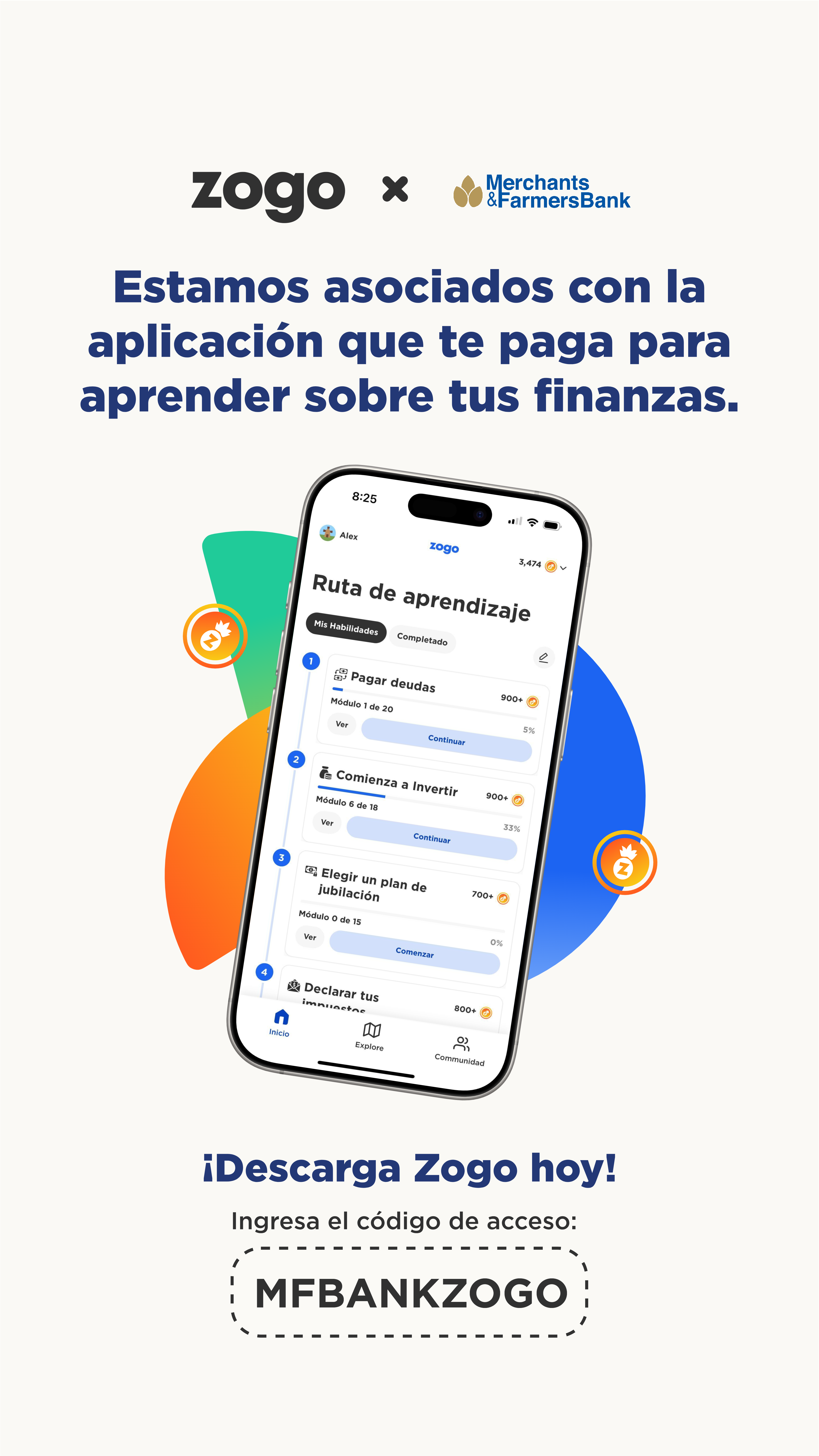 - Acceso a ZOGO, una aplicación de literatura financiera para jugar juegos y ganar recompensas
